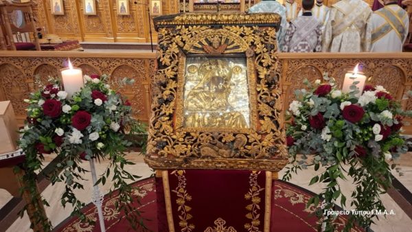 Τέλος, ευχήθηκε η Παναγία να σκεπάσει και να ευλογήσει τους πιστούς που θα προσέλθουν να προσκυνήσουν την Ιερά Εικόνα της και να εκζητήσουν τις θεομητορικές πρεσβείες της.