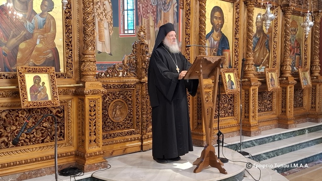 Ο Σεβασμιώτατος προσφωνώντας τον π. Μύρωνα αναφέρθηκε στον σκοπό των αγιολογικών διαλέξεων, που είναι να μας φέρουν πιο κοντά στους προσφάτως ανακηρυχθέντες από την Αγία και Ιερά Σύνοδο του Οικουμενικού μας Πατριαρχείου, νεοφανείς Αγίους, μεταξύ των οποίων εξέχουσα θέση κατέχει ο Άγιος Ιερώνυμος ο Σιμωνοπετρίτης.