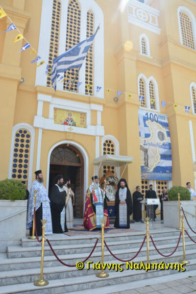 Κατά τη διάρκεια της Δοξολογίας ο Μητροπολίτης, αφού καλωσόρισε τους παρευρισκομένους και ιδιαίτερα τον Υφυπουργό κ. Καράογλου, ως εκπρόσωπο της Κυβερνήσεως, τόνισε πως 100 χρόνια πριν σε αυτό το σημείο ο κόσμος υποδέχτηκε το στρατό και τον στρατηγό Κ. Μαζαράκη, πανηγυρίζοντας για την απελευθέρωση της πόλης. Σήμερα, όμως, ο τρόπος που γιορτάζουμε τη μέρα είναι διαφορετικός, μα ταυτόχρονα και ένας τρόπος που μας τιμά ως Έλληνες.