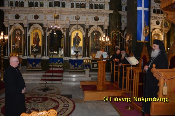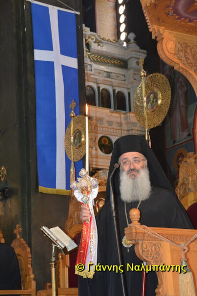 Κατά τη διάρκεια της Δοξολογίας ο Μητροπολίτης, αφού καλωσόρισε τους παρευρισκομένους και ιδιαίτερα τον Υφυπουργό κ. Καράογλου, ως εκπρόσωπο της Κυβερνήσεως, τόνισε πως 100 χρόνια πριν σε αυτό το σημείο ο κόσμος υποδέχτηκε το στρατό και τον στρατηγό Κ. Μαζαράκη, πανηγυρίζοντας για την απελευθέρωση της πόλης. Σήμερα, όμως, ο τρόπος που γιορτάζουμε τη μέρα είναι διαφορετικός, μα ταυτόχρονα και ένας τρόπος που μας τιμά ως Έλληνες.