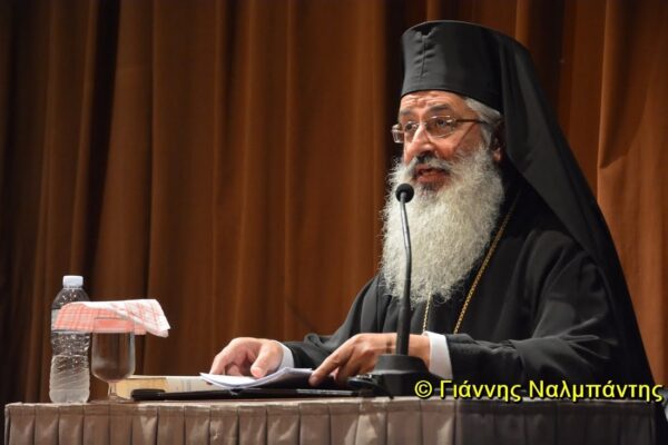 Αμέσως μετά ο Σεβασμιώτατος ανέπτυξε το θέμα της εναρκτήριας ομιλίας του που ήταν “Το Παλαιοημερολογιακό ζήτημα – Η απαρχή και η εξέλιξή του στην Ελλάδα” και αναφέρθηκε με ιστορικά στοιχεία στην εξέλιξη του ζητήματος του παλαιού ημερολογίου και όσων το ακολουθούν στην Χώρα μας και των προβλημάτων που δημιουργούν οι οπαδοί του, αναφερόμενος και στο θέμα του καθηρημένου κληρικού της Μητροπόλεώς που αν και η Εκκλησία τον αποψίλωσε από την ιερωσύνη εκείνος προσπαθεί να δημιουργήσει στον τόπο μας μιά προβληματική παλαιοημερολογίτικη θρησκεία.