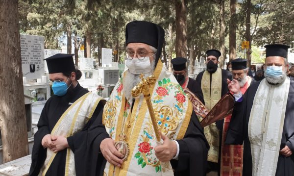 Μετά το τέλος του Εσπερινού, ιερείς βρέθηκαν στα δύο κοιμητήρια της πόλης μας όπου έψαλλαν τα εγκώμια και τέλεσαν τρισάγιο για όλους τους κεκοιμημένους. Ο Σεβασμιώτατος παρέστη στο Α΄ Κοιμητήριο της πόλεως μας, πραγματοποίησε περιφορά του Επιταφίου εντός του κοιμητηρίου, ενώ τέλεσε τρισάγιο υπέρ πάντων των προαναπαυσαμένων πατέρων και αδελφών ημών.