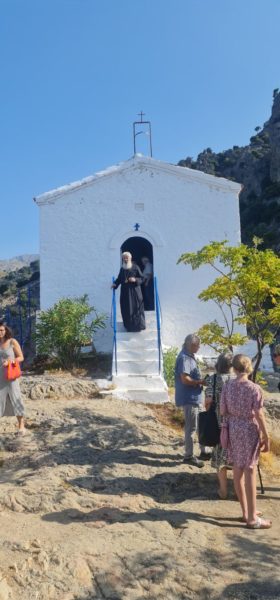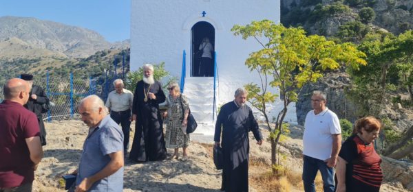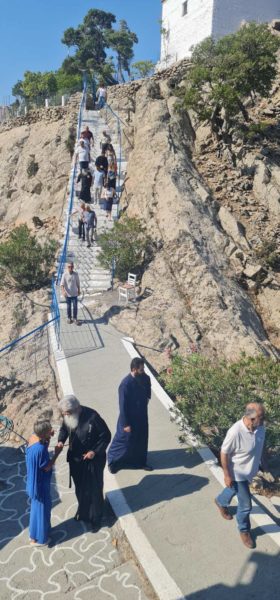 To γραφικό Παρεκκλήσιο της Παναγίας της Κρημνιώτισσας στη Σαμοθράκη εόρτασε την Πέμπτη 17 Αυγούστου 2023, στα τριήμερα της εορτής της Κοιμήσεως της Θεοτόκου.