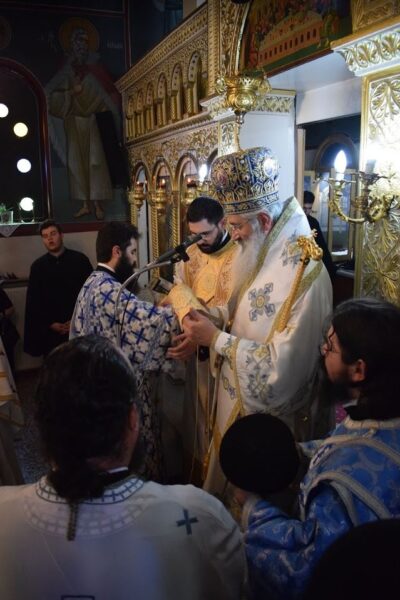 Κατά τη διάρκεια της Θείας Λειτουργίας ο Μητροπολίτης τέλεσε την εις διάκονον χειροτονία ενός νέου που κατάγεται από τη Γεμιστή, του κ. Γεωργίου Μπαρμπούδη.
