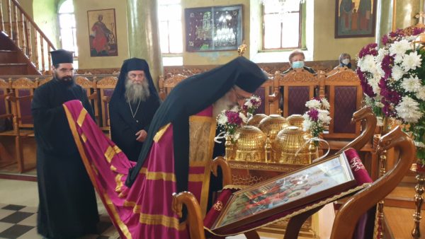 Για το λόγο αυτό ο Σεβασμιώτατος Μητροπολίτης Αλεξανδρουπόλεως κ. Άνθιμος μετέβη στη Σαμοθράκη και χοροστάτησε, το Σάββατο το απόγευμα, στον πανηγυρικό Αρχιερατικό Εσπερινό, ενώ την Κυριακή ο πρωί, προηξήρχε της Αρχιερατικής Θείας Λειτουργίας, στον Ιερό Ναό Κοιμήσεως Θεοτόκου στη Χώρα, πλαισιούμενος από τους ιερείς της νήσου.