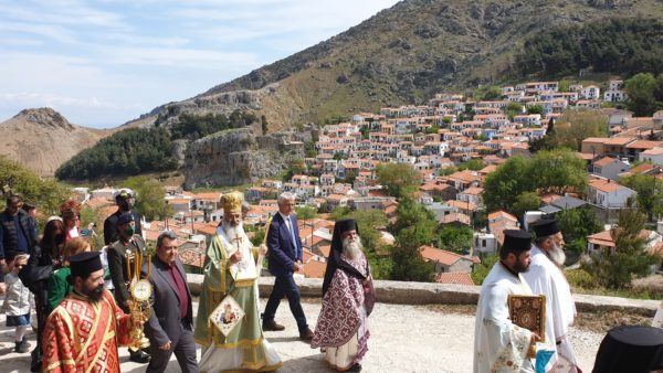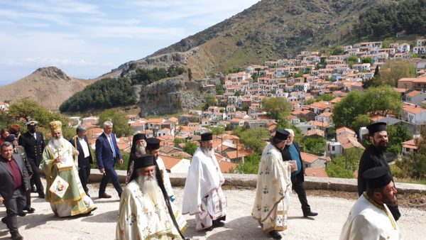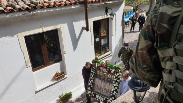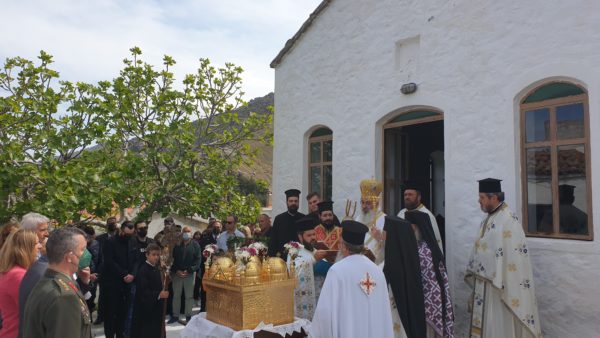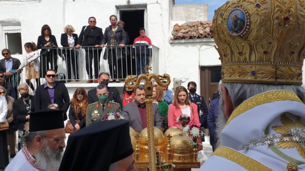 Αμέσως μετά τη Θεία Λειτουργία πραγματοποιήθηκε η λιτάνευση των τιμίων λειψάνων των Μαρτύρων στα γραφικά στενά της Χώρας.
