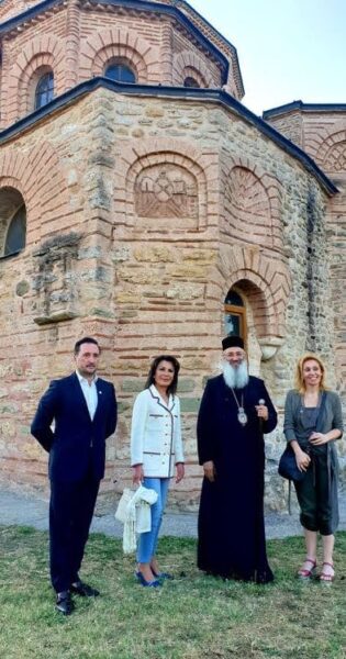 Ο Σεβασμιώτατος καλωσόρισε την κα Αγγελοπούλου στον ιστορικό ναό της Παναγίας, ενώ εκείνη με τη σειρά της δήλωσε συγκινημένη, καθώς ήταν η πρώτη φορά που βρίσκεται στον τόπο αυτόν για τον οποίο έχει διαβάσει τόσα πολλά.