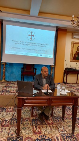 Ο κ. Δημήτριος Μανούσης, Υποψ. Δρ. και Εκπ/κός Β/θμιας Εκπ/σης με θέμα: «Υμνολογία ΙΙ. Η ποίηση του κανόνος»,