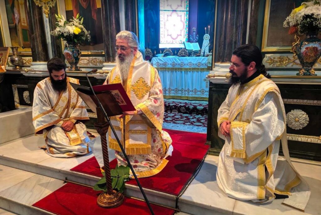Έπειτα ακολούθησε ο Εσπερινός, όπου ανέγνωσε σύμφωνα με την τάξη τις ευχές της γονυκλισίας.