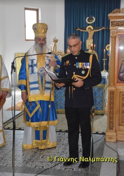 Στο τέλος της Θείας Λειτουργίας τελέσθηκε η επίσημη Δοξολογία για τις Ένοπλες Δυνάμεις της πατρίδος μας. Ο Μητροπολίτης μας ευχήθηκε στον Διοικητή της 12ης Μεραρχίας, υποστράτηγο κ. Καβιδόπουλο για την εορτή των Ενόπλων Δυνάμεων και ευχήθηκε σύντομα να μπορέσει να ξεκινήσει η ανέγερση του κυρίως ναού της Παναγίας της Στρατηγίσσης, ώστε να τελείται εκεί η εορτή των Εισοδίων και των υπολοίπων θεομητορικών εορτών που θα οριστούν.