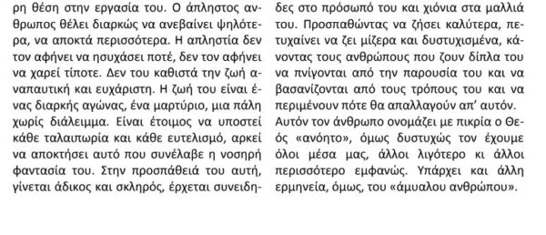 “Ο άπληστος άνθρωπος θέλει διαρκώς να ανεβαίνει ψηλότερα, να αποκτά περισσότερα”.