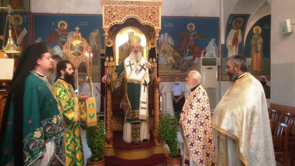 Αμέσως μετά ο Σεβασμιώτατος τέλεσε την Αρχιερατική Θεία Λειτουργία την οποία παρακολούθησαν πλήθος πιστών από τις Φέρες, τηρώντας απόλυτα τα μέτρα κατά της πανδημίας του κορονοϊου, καθώς και ο δήμαρχος Αλεξανδρούπολης κ. Γιάννης Ζαμπούκης και άλλοι εκπρόσωποι των τοπικών φορέων.