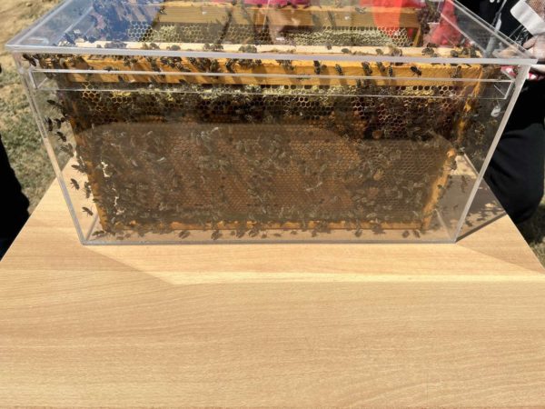 Με τη βοήθεια έμπειρου μελισσοκόμου παρατήρησαν την γυάλινη κυψέλη και έμαθαν πώς λειτουργεί η μικρή, αλλά θαυμαστή κοινωνία των μελισσών. Ακολούθησαν βήμα βήμα τη διαδικασία που χρειάζεται για να συλλεχθεί το μέλι, έμαθαν και για τα υπόλοιπα μελισσοκομικά προϊόντα που συλλέγονται και χρησιμοποίησαν τα ειδικά εργαλεία. Οι μικροί μαθητές ενθουσιάστηκαν με την παρατήρηση των μελισσών μέσα στην γυάλινη κυψέλη και χάρηκαν γι’ αυτήν την ενδιαφέρουσα εμπειρία. Μέσα από το ενδιαφέρον βιωματικό εργαστήριο, αναδύθηκε η όμορφη ιδέα να παράγουμε στο Σχολείο μας το δικό μας μέλι, το οποίο αγαπάνε τα παιδιά του σχολείου μας και γεύονται τακτικά στα πρωινά τους γεύματα.