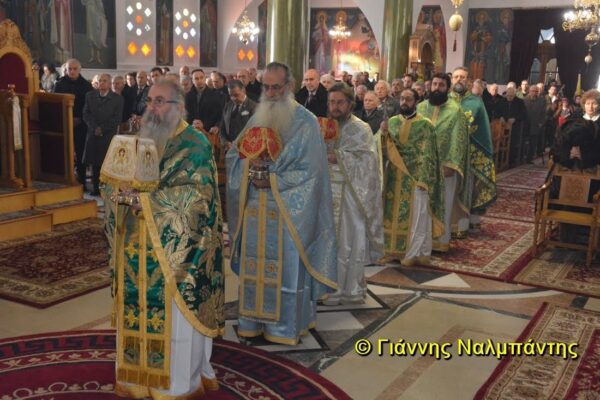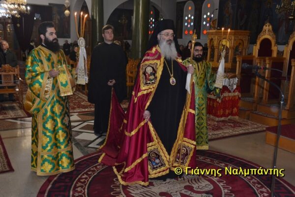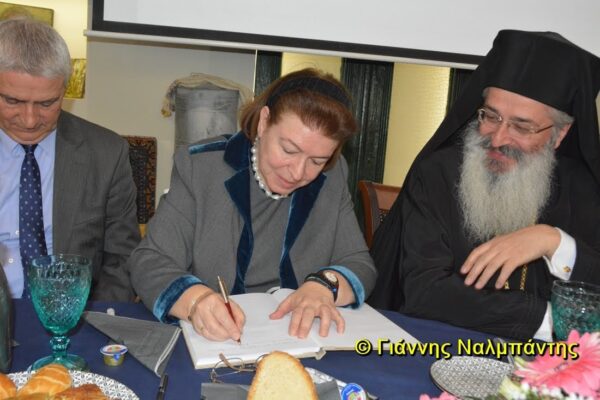 Ο Μητροπολίτης καλωσόρισε την κ. Μενδώνη στην πόλη μας, λέγοντας ότι κατά το παρελθόν έχει επισκεφθεί την περιοχή μας πάρα πολύ συχνά, ιδιαίτερα στη μνήμη του Οσίου Δημητρίου, αλλά φέτος με την ιδιότητα της Υπουργού του Πολιτισμού της Πατρίδος μας ο ερχομός της έχει σημαντικό και συμβολικό χαρακτήρα. Ο Μητροπολίτης μίλησε για την αγιότητα στις μέρες μας με αφορμή την ευαγγελική περικοπή του τελώνη και του φαρισαίου, αλλά και την οσιακή μορφή του Καππαδόκη Αγίου Δημητρίου, τον οποίον οι συμπατριώτες του σέβονται και τιμούν όλα αυτά τα χρόνια και αναφέρθηκε στις προσπάθειες που γίνονται για την αγιοκατάταξή του.