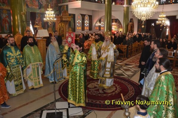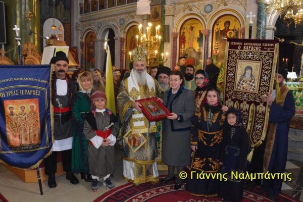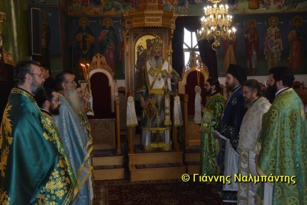Ο Μητροπολίτης καλωσόρισε την κ. Μενδώνη στην πόλη μας, λέγοντας ότι κατά το παρελθόν έχει επισκεφθεί την περιοχή μας πάρα πολύ συχνά, ιδιαίτερα στη μνήμη του Οσίου Δημητρίου, αλλά φέτος με την ιδιότητα της Υπουργού του Πολιτισμού της Πατρίδος μας ο ερχομός της έχει σημαντικό και συμβολικό χαρακτήρα. Ο Μητροπολίτης μίλησε για την αγιότητα στις μέρες μας με αφορμή την ευαγγελική περικοπή του τελώνη και του φαρισαίου, αλλά και την οσιακή μορφή του Καππαδόκη Αγίου Δημητρίου, τον οποίον οι συμπατριώτες του σέβονται και τιμούν όλα αυτά τα χρόνια και αναφέρθηκε στις προσπάθειες που γίνονται για την αγιοκατάταξή του.