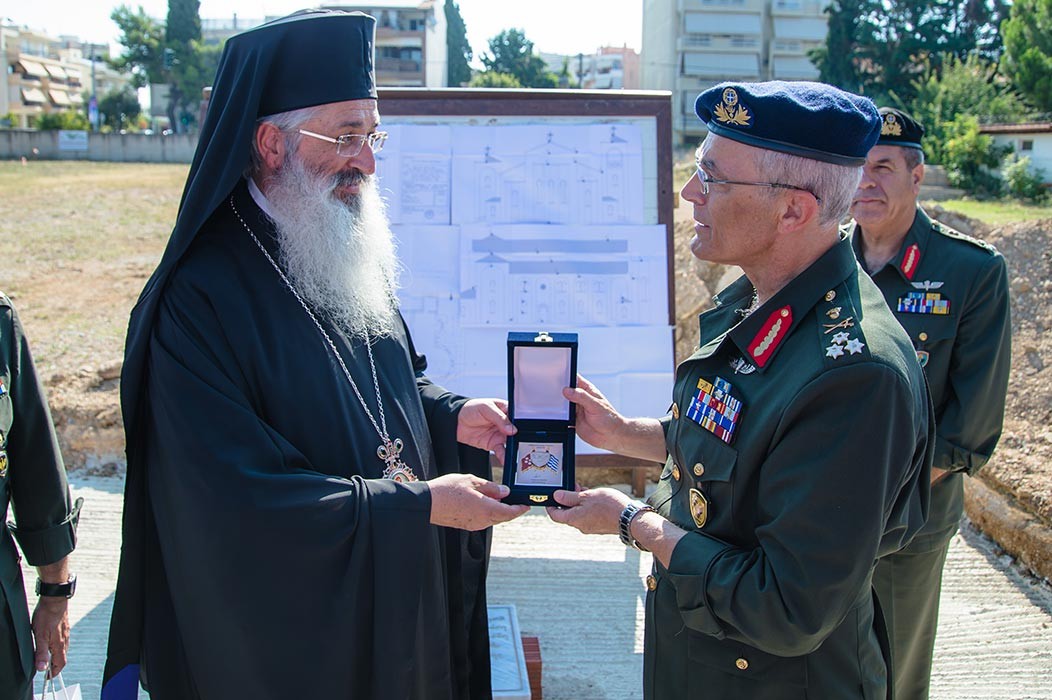 Στην συνέχεια, ο Αρχηγός παρέστη στην τελετή θεμελίωσης του Ιερού Ναού «Παναγίας Στρατηγίσσης», στο Στρατόπεδο «ΑΝΤΓΟΥ ΙΩΑΝΝΗ ΖΗΣΗ» στην Αλεξανδρούπολη.