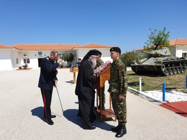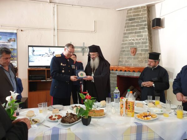 Ο Σεβ. Μητροπολίτης Αλεξανδρουπόλεως κ. Άνθιμος ευρισκόμενος στη Σαμοθράκη επισκέφθηκε το 41ο Σύνταγμα Πεζικού που εδρεύει στο νησί και συμμετείχε στον επίσημο εορτασμό του προστάτου Αγίου Γεωργίου και στην Δοξολογία προς τιμήν του Στρατού μας. Ο Μητροπολίτης μας ευχήθηκε στον Διοικητή του Στρατοπέδου, στους αξιωματικούς, υπαξιωματικούς και οπλίτες ο Άγιος να τους προστατεύει, όπως διαφυλάττει ολόκληρη την Πατρίδα μας και τον ένδοξο στρατό της και ευχήθηκε σε όλους για τις χαρμόσυνες ημέρες του Πάσχα. Ακολούθησε δεξίωση που παραχώρησε ο στρατιωτικός Διοικητής του νησιού προς τον Μητροπολίτη μας, τους ιερείς και τους άρχοντες του νησιού.