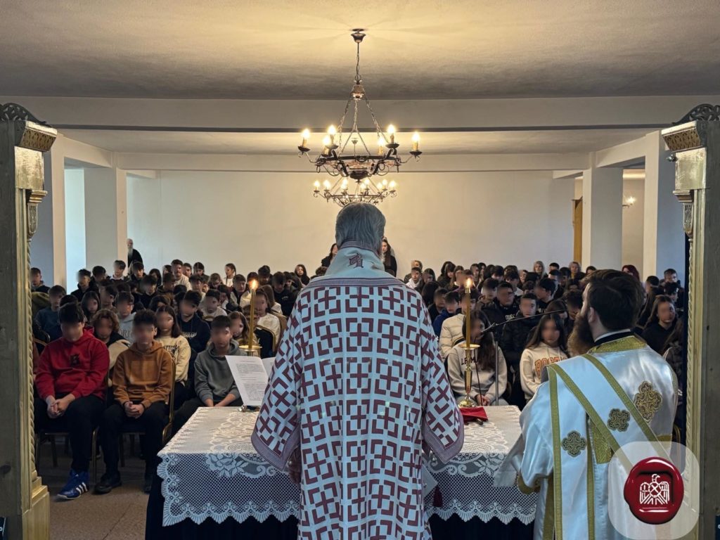 Η τέλεση του Ιερού Μυστηρίου πραγματοποιήθηκε με τους μαθητές, (περισσότεροι από διακόσιοι προσήλθαν), που κατέκλυσαν τον Ναό, να έχουν οπτική επαφή με τα τελούμενα, αφού η Αγία Τράπεζα μεταφέρθηκε στον σολέα. Έτσι δόθηκε η ευκαιρία στα παιδιά να παρακολουθήσουν πιο άνετα και να κατανοήσουν καλύτερα τις λέξεις και τα νοήματα της Θείας Λειτουργίας. Μεγάλος ήταν, επίσης, ο αριθμός των μαθητών που προσήλθαν και κοινώνησαν των Αχράντων Μυστηρίων.