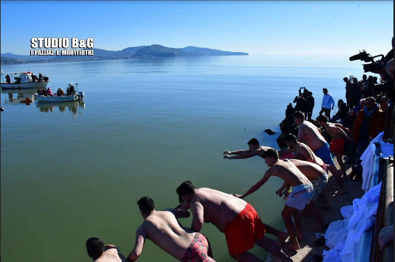 Στη Ν. Κίο την τελετή του Αγιασμού των υδάτων τέλεσε ο Μητροπολίτης Αργολίδος κ. Νεκτάριος παρουσία της Δημοτικής αρχής του Δήμου Άργους Μυκηνών και πλήθος κόσμου, Κυριακή 6 Ιανουαρίου 2019. Στην κωμόπολη της Νέας Κίου, λίγα χιλιόμετρα από το Ναύπλιο, αναβιώνουν Μικρασιατικά έθιμα από την Κίο, με ρίψη του νεότερου καπετάνιου στη θάλασσα και τον πυροβολισμό των γκαζοτενεκέδων που βρίσκονται μέσα στην θάλασσα. Κάθε χρόνο πάρα πολλά νέα παιδιά πέφτουν στα παγωμένα νερά για να πιάσουν το σταυρό για ευλογία δική τους και των οικογενειών τους.