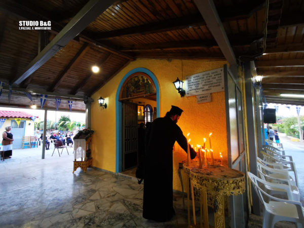 Την παραμονή της εορτής τελέσθηκε Αρχιερατικός Εσπερινός χοροστατούντος του Μητροπολίτη Αργολίδας. Αμέσως μετά το πέρας του Αρχιερατικού εσπερινού ακολούθησε το θείο κήρυγμα. Τον Εσπερινό μεταξύ άλλων παρακολουθησε και ο Πρόεδρος της ΚΕΔΑΜ Άργους Μυκηνων Παναγιώτης Σκούφης. Το εκκλησάκι ανήκει εκκλησιαστικά στο Σκαφιδάκι και την εξ ολοκλήρου φροντίδα έχει ο κ. Χρήστος Φωτιάδης με την οικογένεια του.