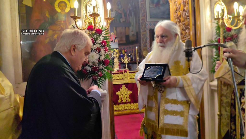 Ακολούθως ο εφημέριος του Ιερού Ναού π. Παναγιώτης Κιντής εκ μέρους του εκκλησιαστικού συμβουλίου του Μητροπολιτικού Ναού τίμησε για την 50ετή προσφορά του στο Ναό τον Λαμπαδάριο Παναγιώτη Γκολέμη.