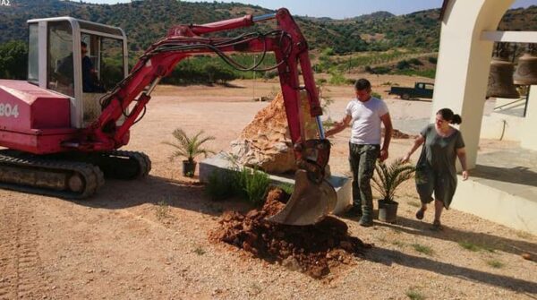 Πρόκειται για την πρώτη δράση που πραγματοποιείται στο πλαίσιο της πρωτοβουλίας του εκκλησιαστικού συμβουλίου και ομάδας εθελοντών . Μάλιστα ο εφημέριος του ναού π. Δημήτρης Κρουσταλάκης δεν δίστασε να χειριστεί τον εκσκαφέα.