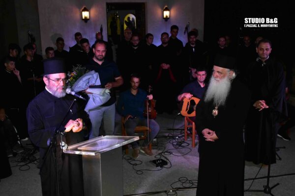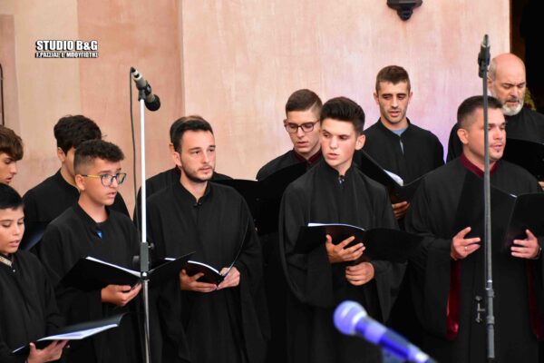 Εκκλησιαστικούς ύμνους αποδώσαν από τα προγράμματά τους οι φετινοί αριστούχοι διπλωματούχοι της Σχολής Βυζαντινής Μουσικής της Ιεράς Μητροπόλεώς Αργολίδας και αξιόλογα μέλη του Βυζαντινού Χορού «Άγιος Πέτρος Επίσκοπος Άργους», ο κ. Γεώργιος Ντεβές, Πρωτοψάλτης του Ιερού Ναού Αγίας Τριάδας Μιδέας και ο κ. Δημήτριος Κορομπόκης, Λαμπαδάριος του Ιερού Ναού Τιμίου Προδρόμου Άργους.