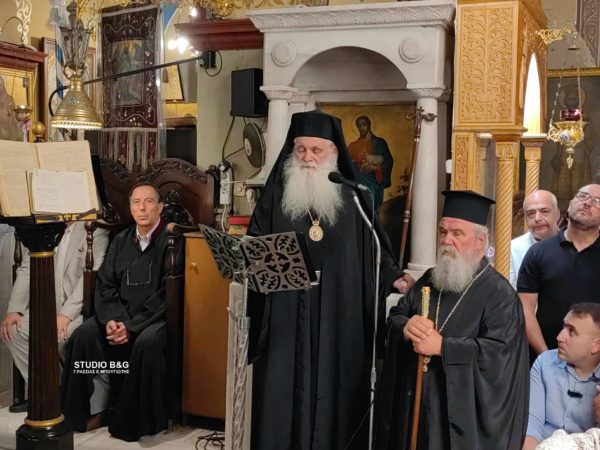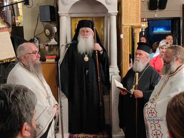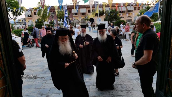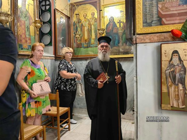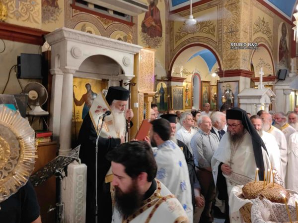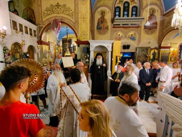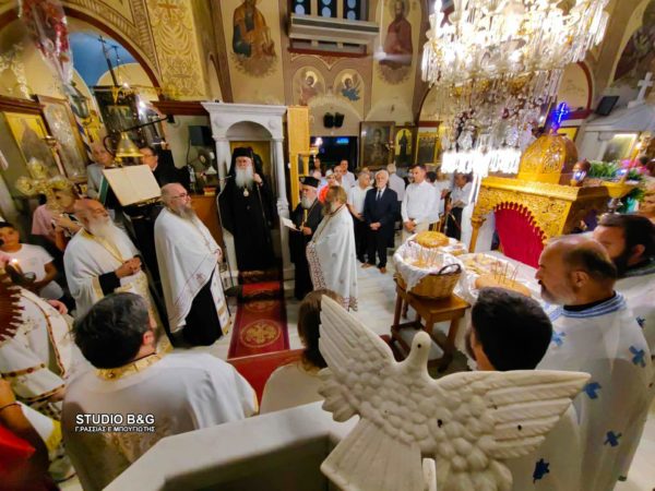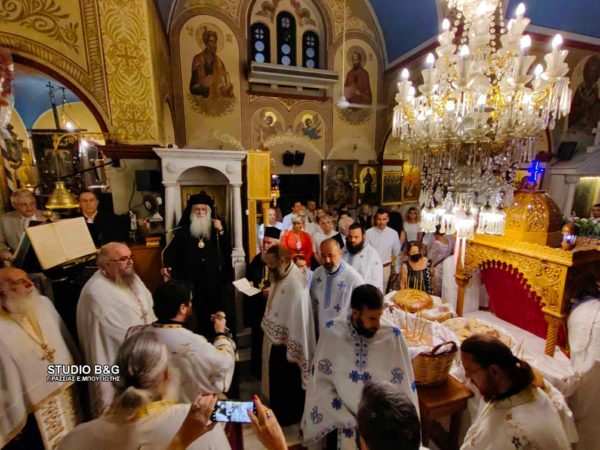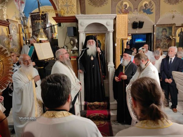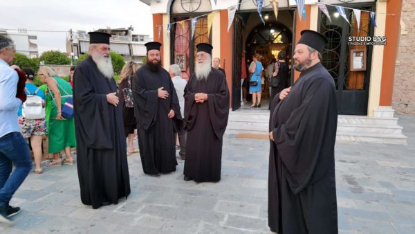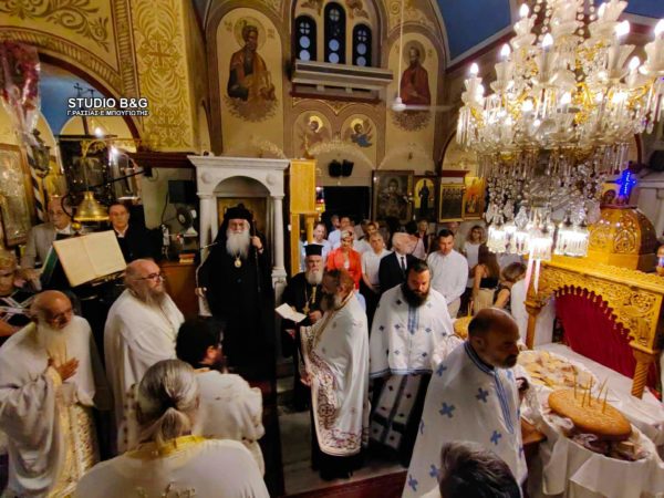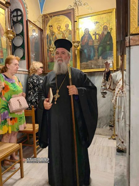 Στον Πανηγυρικό Εσπερινό χοροστάτησε ο Σεβασμιώτατος Μητροπολίτης Αργολίδος κ. Νεκτάριος πλαισιωμένος από Ιερείς από την περιοχή του Άργους και του Ναυπλίου, ενώ έψαλε ο πρωτοψάλτης της Ιεράς Μητροπόλεως Αργολίδος Γεώργιος Δαρλάσης.