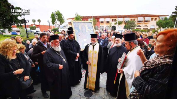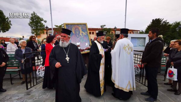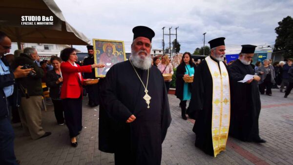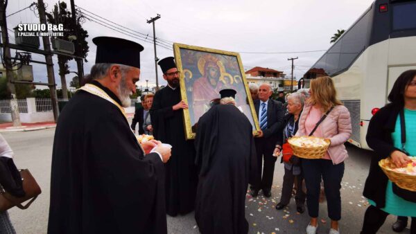 Με κάθε επισημότητα και λαμπρότητα, η θαυματουργή εικόνα της Παναγίας της Τιχερούσας – Κουκουζέλισσας επέστρεψε και πάλι στην ενορία της στην Νέα Κίο Αργολίδας. Η εικόνα είχε μεταφερθεί από τον ιερό ναό Θεομάνας Νέας Κίου Αργολίδος, στον Ιερό Ταξιαρχών (παλαιού) Περιστερίου για ολιγοήμερο προσκύνημα στο πλαίσιο των εορταστικών εκδηλώσεων με την επωνυμία ”Ταξιάρχεια 2019”. Το Περιστέρι και η ενορία του Παλαιού Ταξιάρχη, υποδέχθηκαν την εικόνα της Παναγίας της Τριχερούσα της Κουκουζέλισσας για τον εορτασμό της μεγάλης εορτής των Ταξιαρχών. Την εικόνα συνόδευαν ο εφημέριος του ναού, π. Δημοσθένης Γάτσιος και π. Ηλίας Γάτσιοςς μαζί με προσκυνητές από την Νέα Κίο, όπου τους υποδέχθηκε ο μητροπολίτης Περιστερίου κ. Κλήμης.