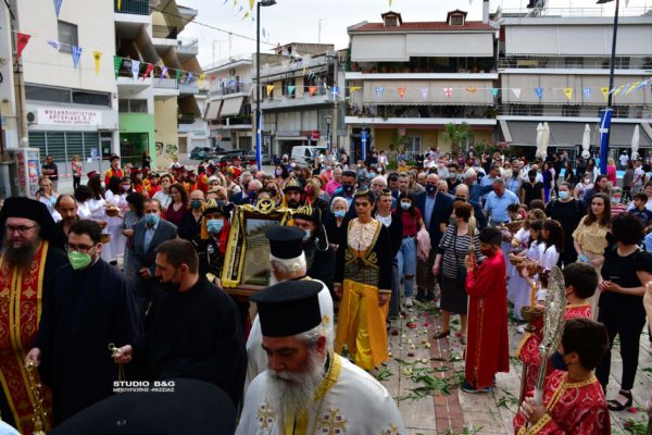 Την μεγάλη του χαρά και ευγνωμοσύνη προς το πρόσωπο του Μητροπολίτη Βεροίας, εξέφρασε ο εφημέριος του ναού των Αγίων Κωνσταντίνου και Ελένης στο Ναύπλιο ,πρωτοπρεσβύτερος π. Γεώργιος Φρίμης, για την μεταφορά της Ιερής εικόνας στον εορτάζοντα ναό.