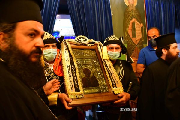 Ένα από τα ιερότερα κειμήλια της Ορθοδοξίας, η εικόνα της Παναγίας Σουμελά, σύμβολο του Ποντιακού Ελληνισμού, μεταφέρθηκε από τον Σεβασμιώτατο Μητροπολίτη Βεροίας, Ναούσης και Καμπανίας κ. Παντελεήμωνα για προσκύνηση, στην πόλη του Ναυπλίου την Τρίτη 17 Μαΐου 2022.