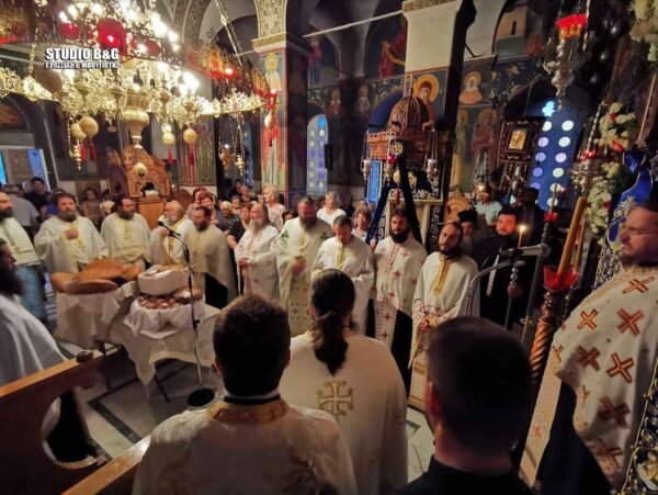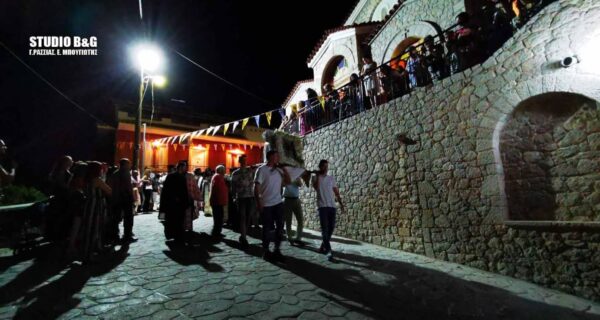 Τον πανηγυρικό εσπερινό τέλεσε ο Ιεροκήρυκας της Μητροπόλεως Αργολίδος, π. Χρυσόστομος Μιχαλόπουλος, παρουσία και άλλων Ιερέων από το Άργος και το Ναύπλιο. Κατόπιν, ακολούθησε η περιφορά της ιεράς εικόνας και του ιερού λειψάνου του Αγίου Παντελεήμονος σε όλη την κωμόπολη, προς ευλογία των πιστών.