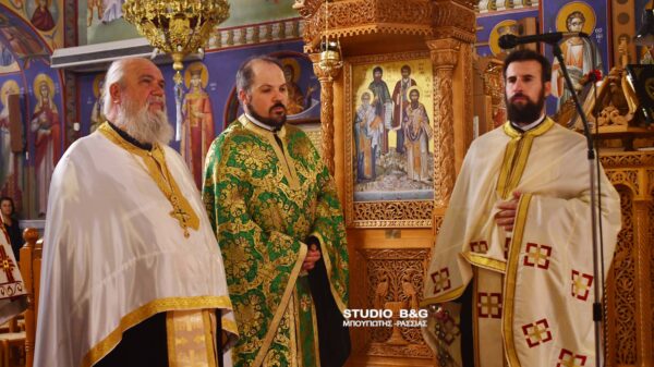 Προς προσκύνηση είχε τεθεί η Ιερά εικόνα των Αγίων που φυλάσσεται στον Ι. Ν Αγίας Ειρήνης Νέας Κίου.