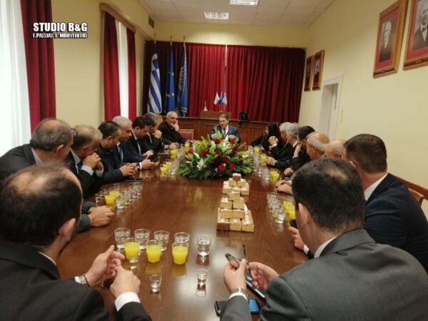 Μετά το πέρας της Δοξολογίας, ο Δήμαρχος και το Δημοτικό Συμβούλιο δέχθηκαν ευχές για το νέο έτος και έκοψαν την Πρωτοχρονιάτικη πίτα, μαζί με τον Μητροπολίτη Αργολίδος Νεκτάριο στο παλιό Δημαρχείο της πόλης.