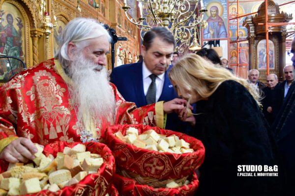Στον πανηγυρίζοντα ιερό ναό του Αγίου Βασιλείου στο Άργος εορτάστηκε ο ερχομός του νέου έτους χοροστατούντος του Σεβ. Μητροπολίτη Αργολίδος κ. Νεκταρίου. Κατά την θεία λειτουργία είχε τεθεί προς προσκύνηση τεμάχιο ιερού λειψάνου του Αγίου Βασιλείου.