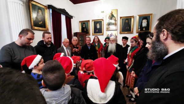 Στον Μητροπολίτη Αργολίδος Νεκτάριο, είπαν τα κάλαντα και μέλη της Δημοτικής φιλαρμονικής ΔΟΠΠΑΤ (Δημοτικός Οργανισμός Πολιτισμού Περιβάλλοντος Αθλητισμού Τουρισμού) Ναυπλίου καθώς και πολλά παιδιά από το Ναύπλιο.