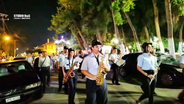 Μετά το θείο κήρυγμα ακολούθησε η λιτανεία της θαυματουργού εικόνος της Παναγίας παιανιζούσης της Φιλαρμονικής Μουσικής Νέας Κίου.