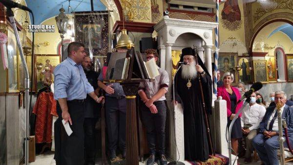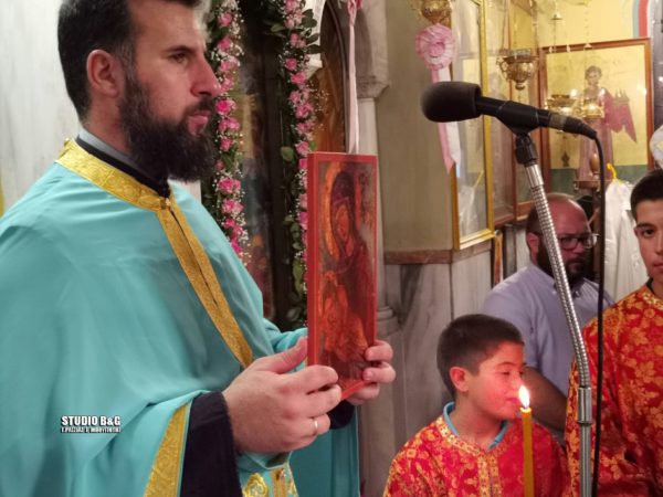 Στον πανηγυρικό εσπερινό χοροστάτησε ο Σεβασμιώτατος Μητροπολίτης Αργολίδος κ. Νεκτάριος πλαισιωμένος από Ιερείς από τις περιοχές του Άργους και του Ναυπλίου.