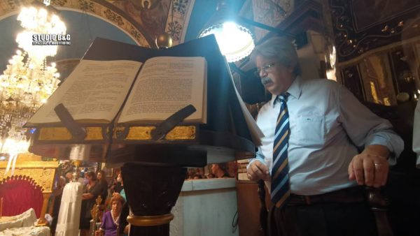 Κατά τον εσπερινό έψαλλε ο πρωτοψάλτης του Μητροπολιτικού Ιερού ναού του Αγίου Γεωργίου Δημήτριος Καρκαλάτος.