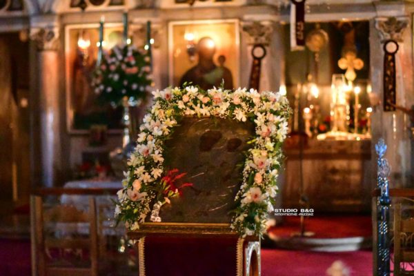 Ο εορτασμός ξεκίνησε με την υποδοχή της θαυματουργής εικόνας «ΠΑΝΑΓΙΑΣ ΠΟΡΤΑΙΤΙΣΣΗΣ» πρώτου αντιγράφου της Ιεράς Μονής των Ιβήρων Αγίου Όρους, στην είσοδο του ναού. Την εικόνα μετέφεραν από την Νέα Κίο Αργολίδας, οι εφημέριοι του ναού Θεομάνας – Οδηγήτριας, πρωτοπρεσβύτερος π. Δημοσθένης Γάτσιος και π. Ηλίας Γάτσιος. Για το ιστορικό της Ιερής Εικόνας και τη διάσωσή της από την Μικρά Ασία όπου βρίσκονταν, μίλησε ο πρώην δήμαρχος Νέας Κίου Γ. Μανινής.