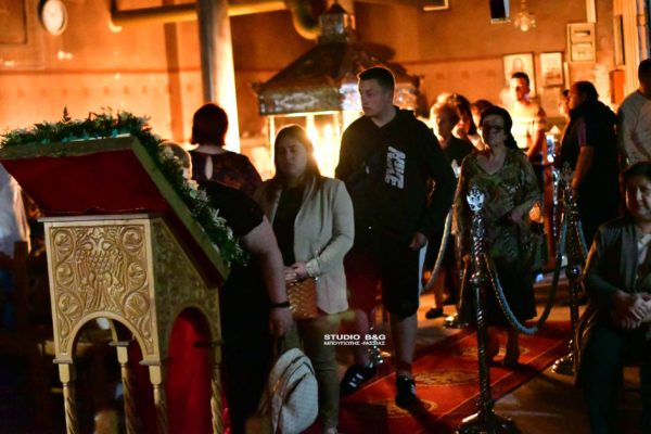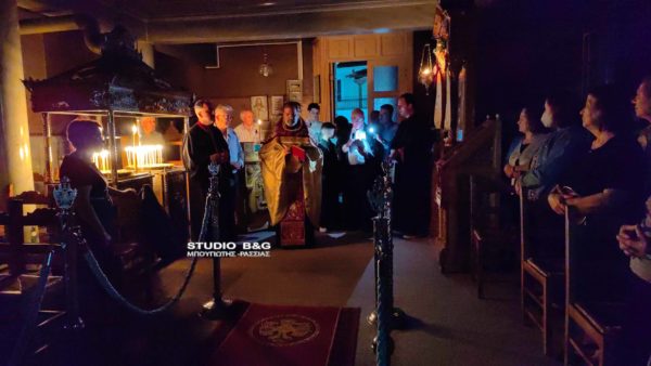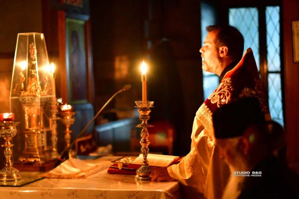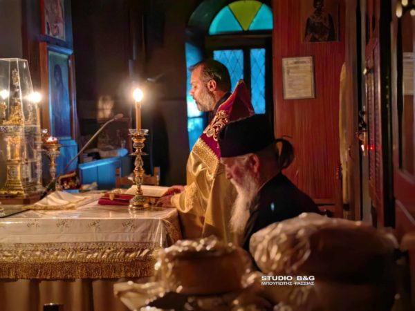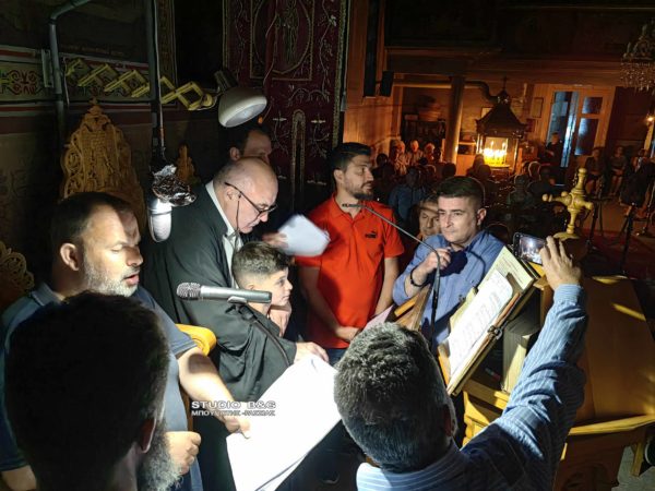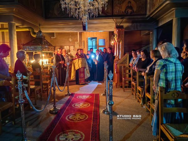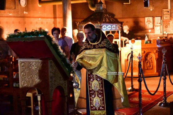 Την Τρίτη το βράδυ τελέστηκε Ιερά Αγρυπνία κατά την Αγιορείτικη τάξη στον εορτάζοντα Ιερό ναό. Κατά την Ιερά αγρυπνία έψαλλαν σπουδαστές του τμήματος Λυγουριού Επιδαύρου της σχολής Βυζαντινής μουσικής της Μητροπόλεως Αργολίδας υπό τη διεύθυνση του πρωτοψάλτου του Μητροπολιτικού Ιερού ναού Αγίου Γεωργίου και καθηγητού της σχολής , Δημητρίου Καρκαλάτου.