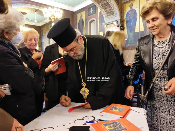 Ακολούθησε η Ιερά παράκληση στον Άγιο Πέτρο και αμέσως μετά έγινε η παρουσίαση του βιβλίου του εφημερίου του ναού και προέδρου του ΙΣΚΕ π. Γεωργίου Σελλή με θέμα τον Άγιο Πέτρο την ζωή και το έργο του. Την παρουσίαση του βιβλίου έκανε ο Μητροπολίτης Αργολίδος κ. Νεκτάριος.