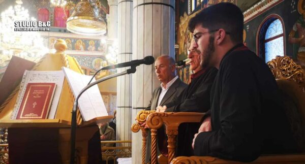 Τα ιερά αναλόγια πλαισίωναν σπουδαστές της Σχολής Βυζαντινής Μουσικής της Ιεράς Μητροπόλεως Αργολίδας υπό την διεύθυνση του Πρωτοψάλτη – Καθηγητού Δημητρίου Καρκαλάτου και κλιμάκιο ιεροψαλτών υπό την διεύθυνση του Πρωτοψάλτη Γεωργίου Δαρλάση.