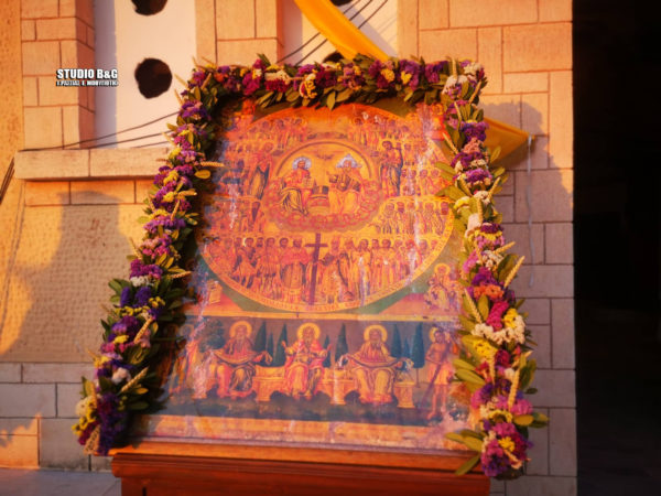 Σήμερα, Κυριακή 19 Ιουνίου, εορτή των Αγίων Πάντων, πανηγυρίζει μεγαλοπρεπώς ο Ιερός Ναός Αγίων Πάντων στο Ναύπλιο. Την παραμονή της εορτής, χθες, Σάββατο, 18 Ιουνίου, εψάλη ο Μέγας πανηγυρικός Εσπερινός μετά αρτοκλασίας και θείου κηρύγματος από τον Ιεροκήρυκα της Ιεράς Μητροπόλεως Αργολίδας, π. Λεόντιο Ξηνταρόπουλο.