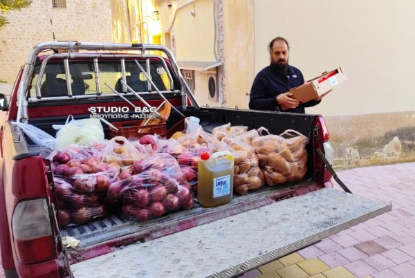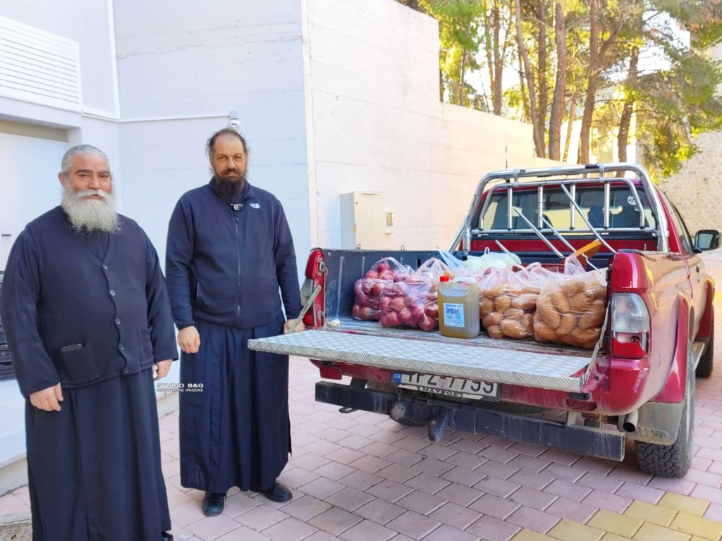 Τα τρόφιμα παρέδωσε ο εφημέριος του Ι.Ν. Αγίας Τριάδος (Μέρμπακα) π. Ιωάννης Μητροσύλης στον υπεύθυνο του Συσσιτίου Ευαγγελίστριας Ναυπλίου π. Ελευθέριο Μίχο.