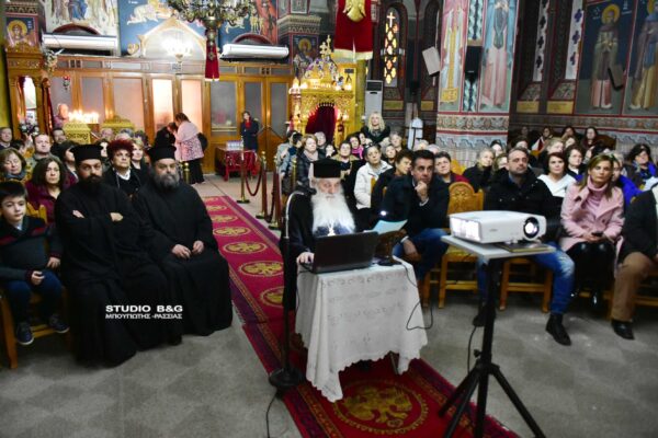 Στο τέλος της εκδήλωσης ο εφημέριος του ναού π. Ιωάννης Μητροσύλης ευχαρίστησε τον Μητροπολίτη Αργολίδος για την τιμή που έκανε και παραβρέθηκε στην εκδήλωση της ενορίας ,καθώς κι όλους που παραβρέθηκαν.