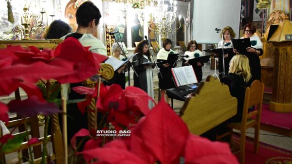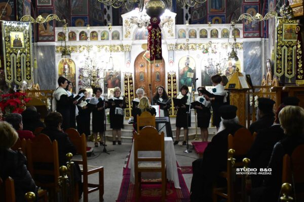Στην εκδήλωση συμμετείχε η χορωδία του Επιμορφωτικού Συλλόγου Αγίας Τριάδος με επίκαιρες μελωδίες και κάλαντα με χοράρχη την θεολένα Πίκη.