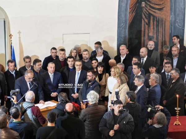 Η τελετή ορκωμοσίας, του νεοεκλεγέντα Δημάρχου Ναυπλιέων Δημήτρη Ορφανού, των τακτικών μελών του Δημοτικού Συμβουλίου, των Συμβουλίων Δημοτικών Κοινοτήτων και των Προέδρων Δημοτικών Κοινοτήτων, του Δήμου Ναυπλιέων, πραγματοποιήθηκε στην αίθουσα της πρώτης Βουλής των Ελλήνων ( Βουλευτικό) στο Ναύπλιο, από τον Μητροπολίτη Αργολίδος κ. Νεκτάριο, Κυριακή 17 Δεκεμβρίου 2023.