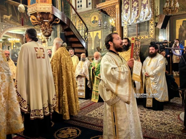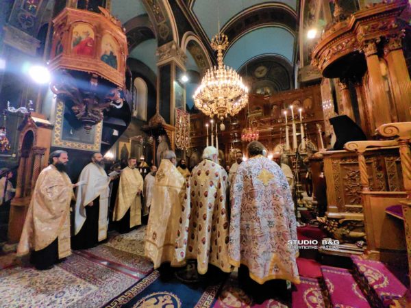 Στον Πανηγυρικό Εσπερινό χοροστάτησε ο Σεβασμιώτατος Μητροπολίτης Αργολίδος κ. Νεκτάριος, ο οποίος κήρυξε και τον θείο λόγο, παρόντος του κλήρου της επαρχίας Άργους.