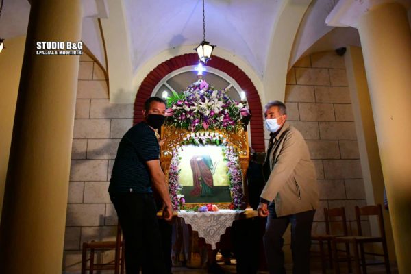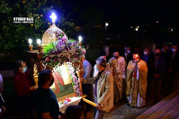 Μετά το πέρας του εσπερινού ακολούθησε μικρή λιτανεία πέριξ του ναού προς ευλογία των πιστών που παραβρέθηκαν στην εορτή της Αγίας.